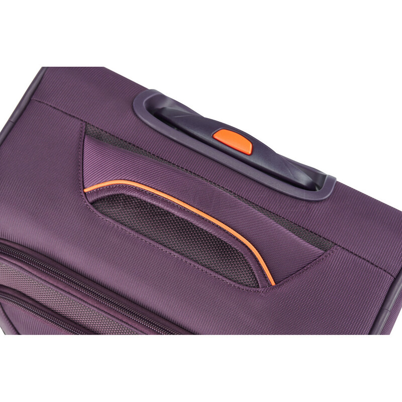 - Rear trolley handle sleeve allows case to be placed on top of other wheeled luggage