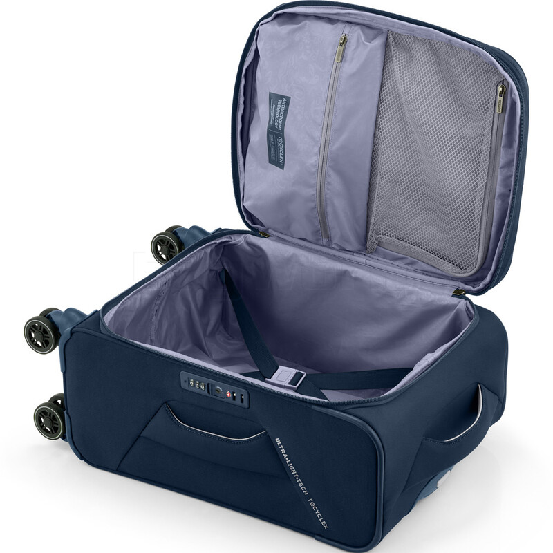 American Tourister Applite has been a global best-seller in softside luggage for many years. The new Applite 5 range has set a new benchmark designed with ultralight tech materials. The interior and exterior fabrics are made with 100% post-consumer recycled plastic bottles (rPet). Applite 5 suitcases are lightweight and packed with features including expanders and Duosaf™ security zipper (in the check-in sizes only) to give better protection to your belongings during your travels. The premium antimicrobial interior comes with packing straps and zipped dividers to keep your clothes in place and organised.