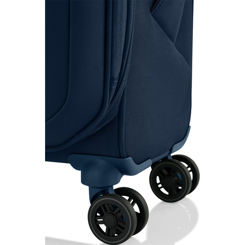 - Rear trolley handle sleeve allows case to be placed on top of other wheeled luggage