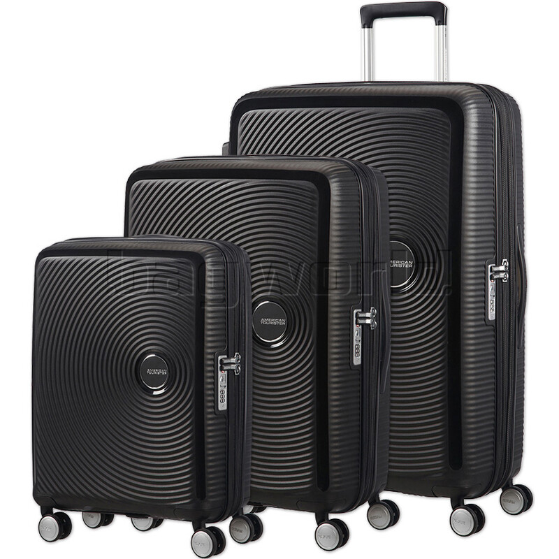 American Tourister Curio 2 Hardside Suitcase Set of 3 Black 45138, 45139, 45140 with FREE Digital Luggage Scale 12775