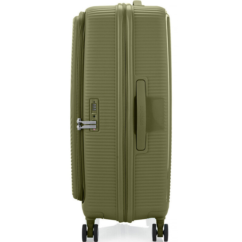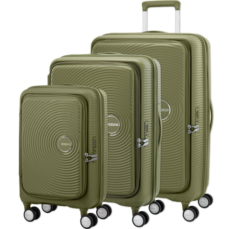 Elevated design and function. American Tourister Curio Book Opening luggage combines the practicality of a soft case with the toughness of a hard case. It features huge packing volume with expandability in all sizes. The Duosaf ™ security zipper delivers top security, and the Optimov™ shock-absorbing wheels allow smooth rolling on bumpy surfaces. The recycled interior lining is treated with Microban® technology to eliminate the growth of bacteria.