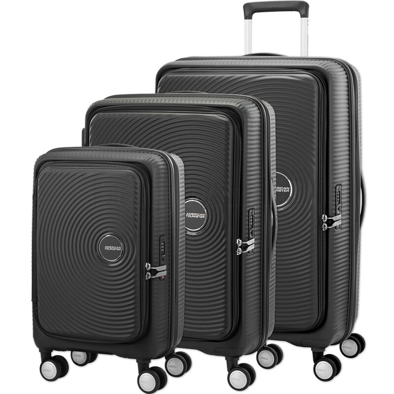 American Tourister Curio Book Opening Hardside Suitcase Set of 3 Black 48232, 48233, 48234 with FREE Digital Luggage Scale 12775