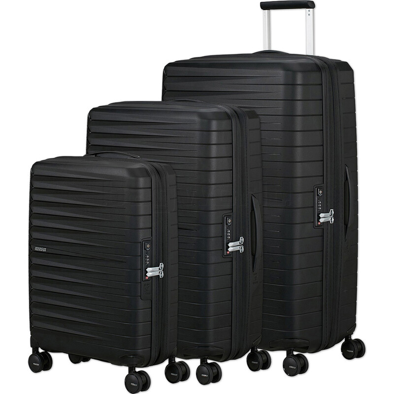 American Tourister Fastforward Hardside Suitcase Set of 3 Flash Black 55259, 55260, 55261 with FREE Digital Luggage Scale 12775