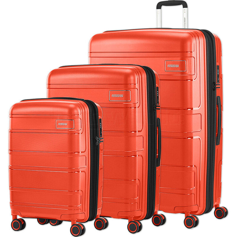 American Tourister Light Max Hardside Suitcase Set of 3 Flame Orange 48198, 48199, 48200 with FREE Digital Luggage Scale 12775
