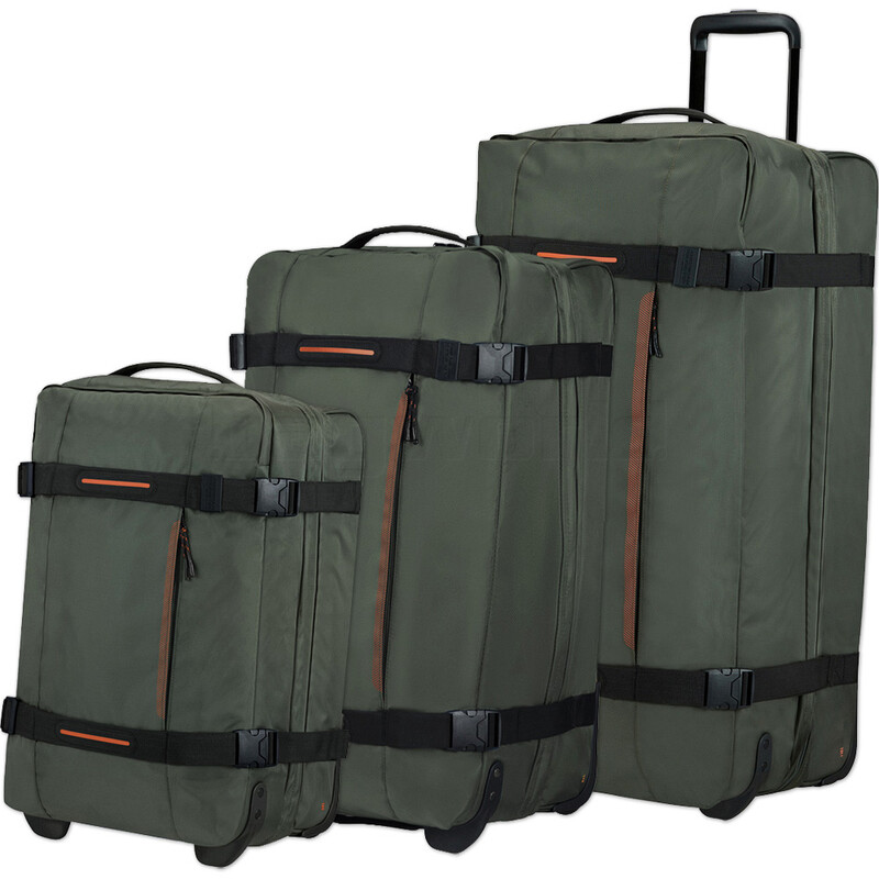 American Tourister Urban Track Drop Bottom Wheel Duffel Set of 3 Dark Khaki 43163, 43164, 43165 with FREE Digital Luggage Scale 12775