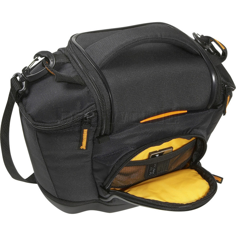 - Zippered compartments on front and rear of case stores memory cards, batteries, cords and other small accessories