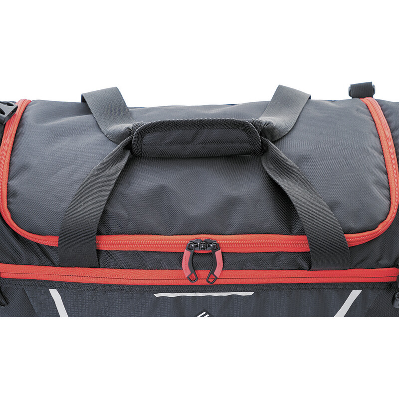 - Large main compartment with U-shaped zippered opening for easy loading