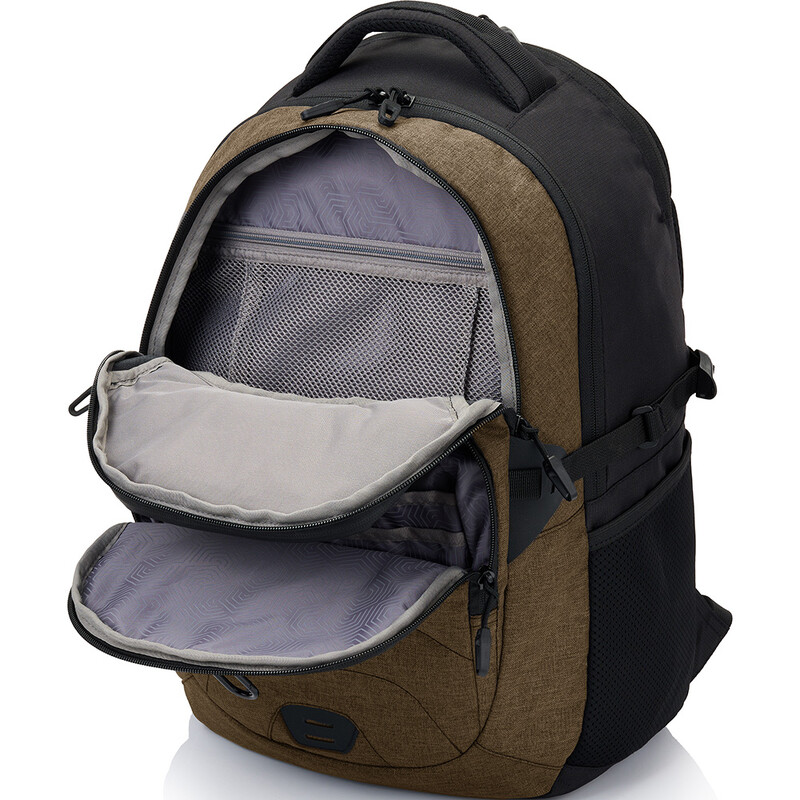 - 2 way opening in main compartment with padded laptop sleeve for screens up to 17” and integrated TECHSPOT™ tablet sleeve that fits most tablets with screens up to 11”