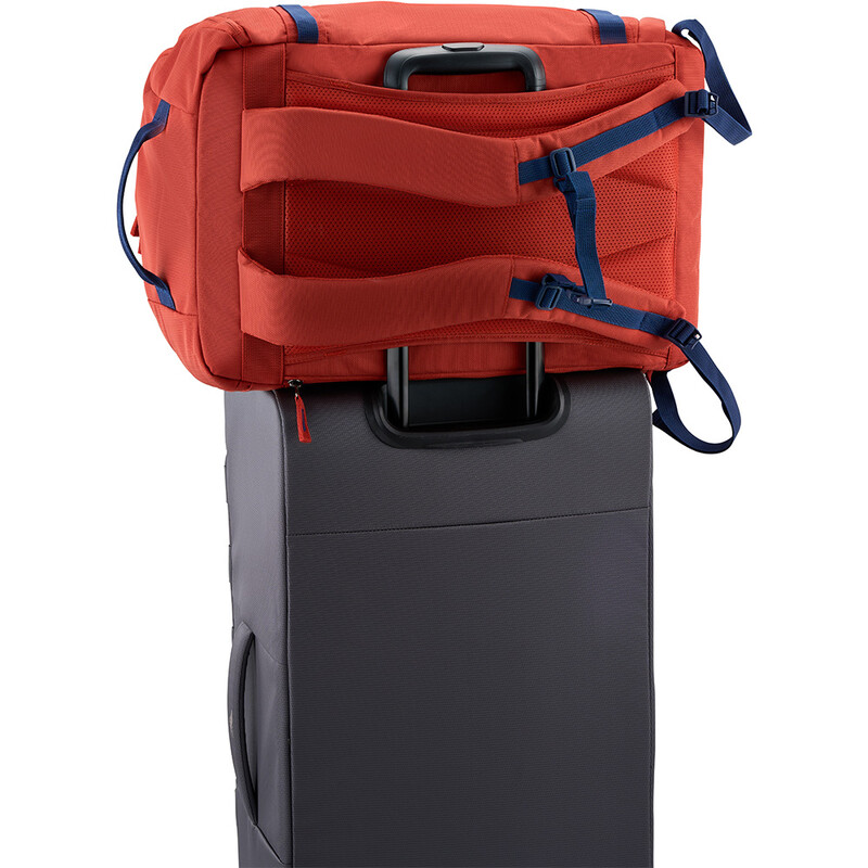 - Smart sleeve on rear slips over trolley handle for use with wheeled luggage