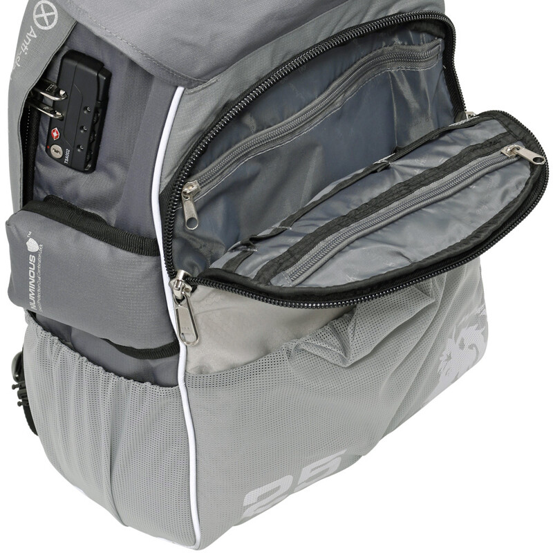 - Numinous Shield system - Retractable combination cable lock system allows you to securely attach your Numinous rucksack to bunk beds in dorm rooms or other fixed objects, giving you peace of mind when you're separated from your Numinous