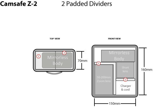 - Fits mirrorless system camera with 1 mounted lens + 1 small lens / flash / battery pack