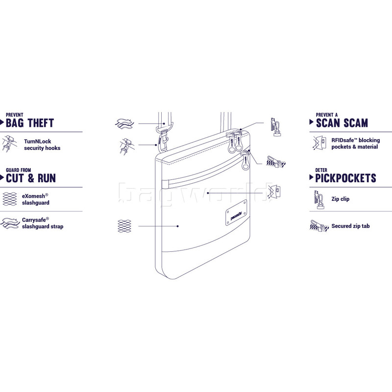 Headed out for a short day trip or excursion? Simply sling the handy Pacsafe Citysafe CS50 Anti-Theft Crossbody Purse over your shoulder and help keep your essentials and valuables safe from opportunistic thieves.