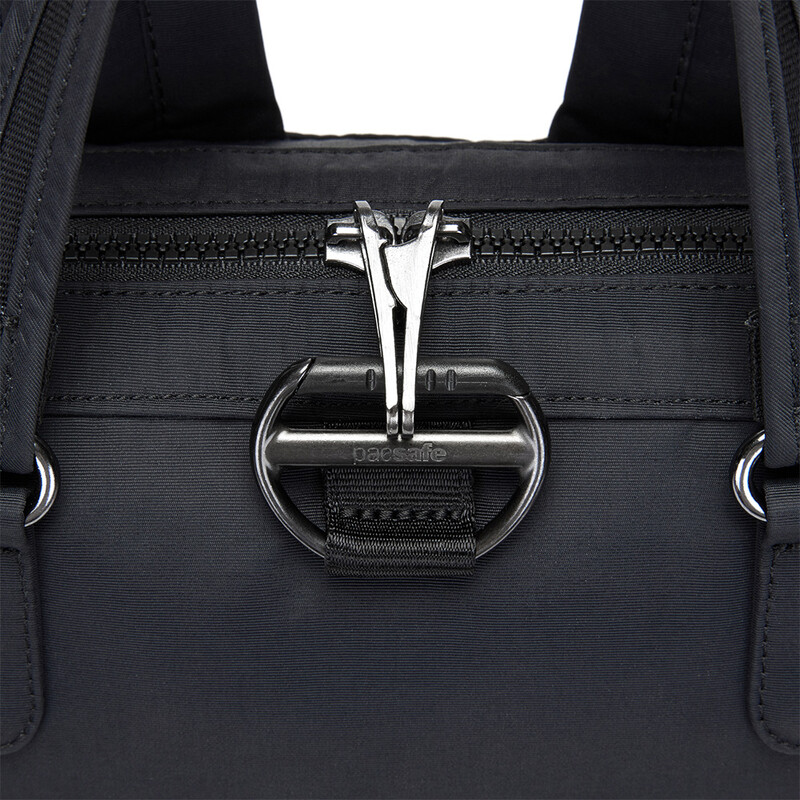 - Turn & lock strap hook™ – The shoulder strap has releasable security hook that allows you to attach the strap to a fixture to stop thieves from easily walking off with your bag