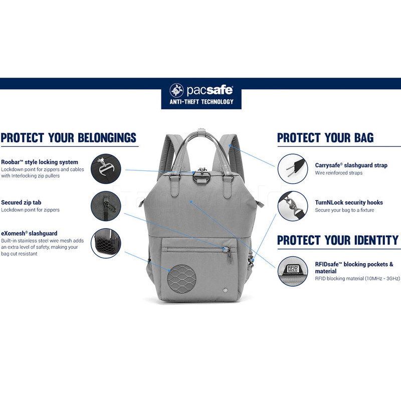 Pacsafe Citysafe CX Anti-Theft 11.6" Laptop Mini Backpack Econyl Gravity Gray 20421