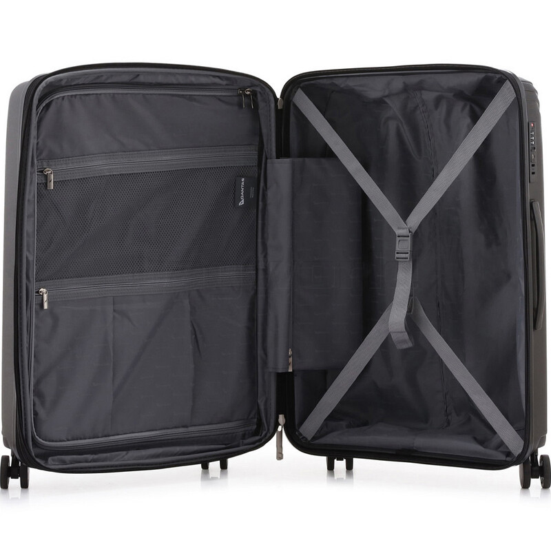 - Fully lined interior with adjustable packing straps, divider panel and 3 zip pockets