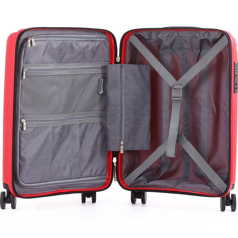 - Fully lined interior with adjustable packing straps, divider panel and 3 zip pockets