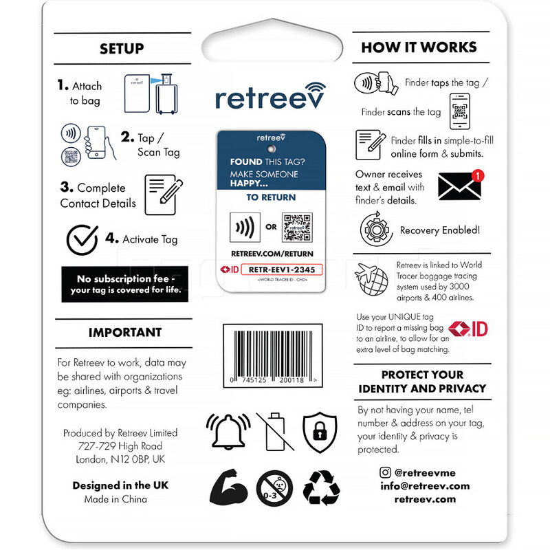 Main features of the Retreev Smart Bag Tag include: