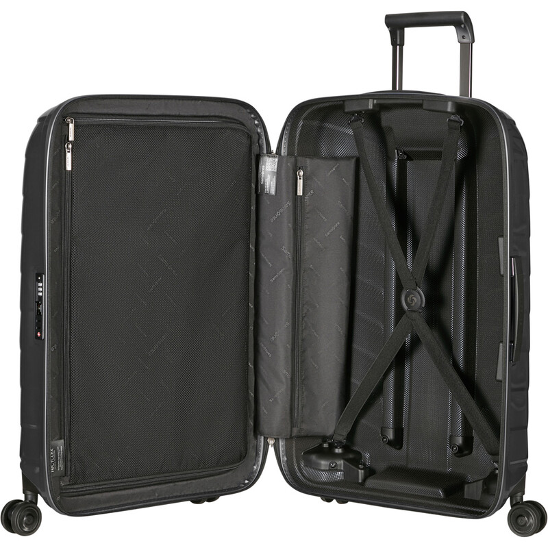 Samsonite Attrix is the latest Samsonite global line made from RoxkinTM Material Technology. The luggage collection features a modern design that is resilient and extremely lightweight thanks to Roxkin™. It comes with premium features such as double tube pull handle, dual suspension wheels and an integrated TSA008 lock. The interior is packed with functional features such as lining and zippers made from recycled PET (rPET) material, cross-ribbons, a divider pad and an apron pocket.