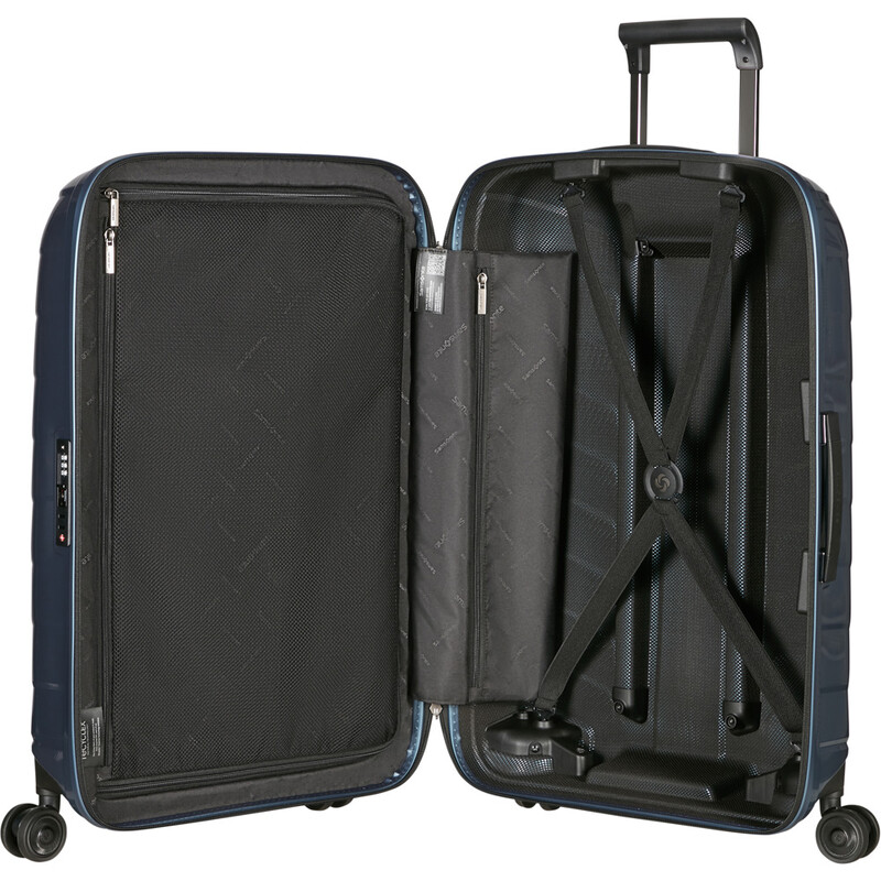 Samsonite Attrix is the latest Samsonite global line made from RoxkinTM Material Technology. The luggage collection features a modern design that is resilient and extremely lightweight thanks to Roxkin™. It comes with premium features such as double tube pull handle, dual suspension wheels and an integrated TSA008 lock. The interior is packed with functional features such as lining and zippers made from recycled PET (rPET) material, cross-ribbons, a divider pad and an apron pocket.