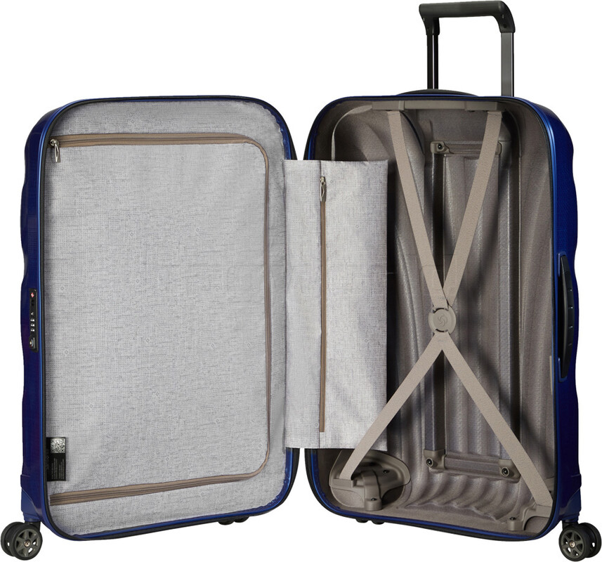 - Shells made from Curv® material, Samsonite's strongest and most lightweight hardside suitcase material