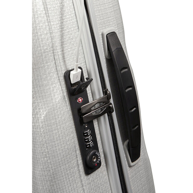 - USB charging port on side of suitcase with inbuilt power pack pocket inside (power pack not included)