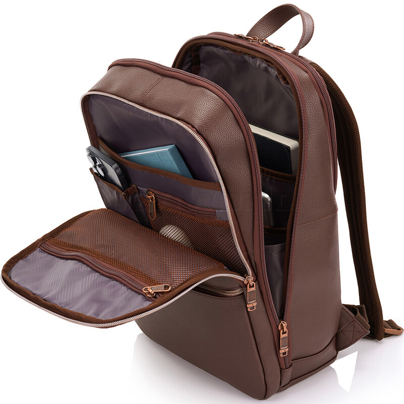 Main features of the Samsonite Classic Leather 14.1” Laptop & Tablet Slim Backpack include: