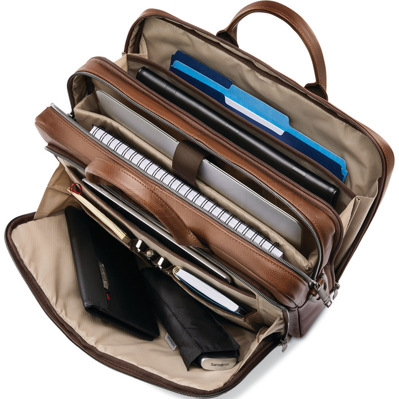 Main features of the Samsonite Classic Leather 15.6” Laptop & Tablet Toploader Briefcase include:
