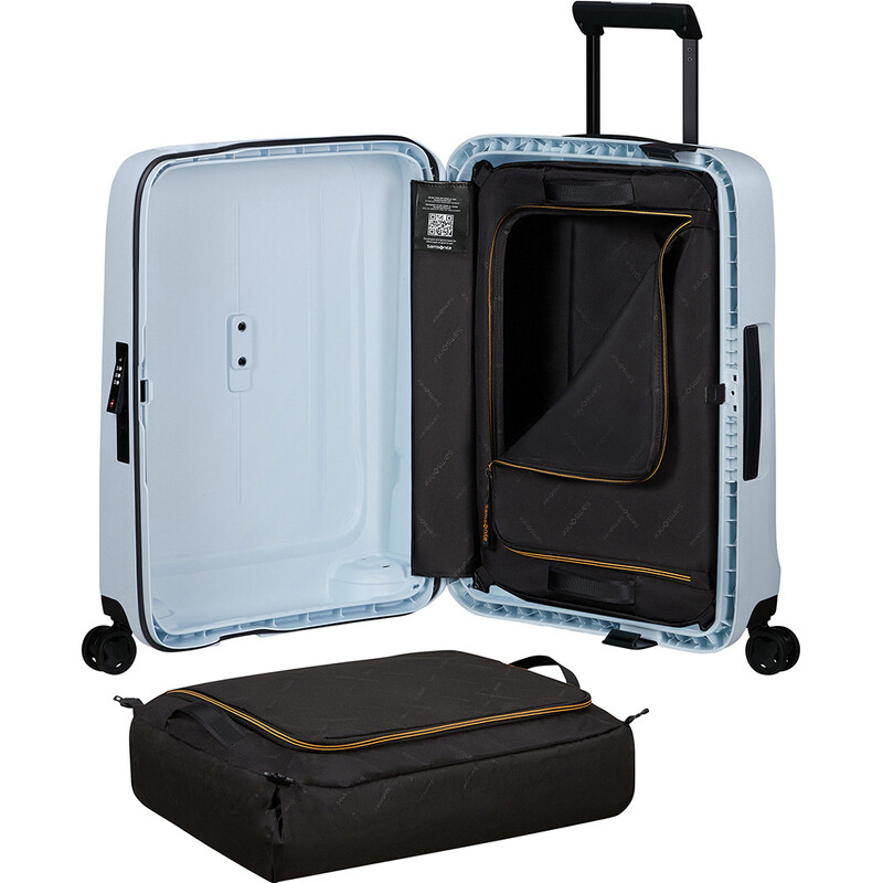 Meet Samsonite Essens, your new essential for every trip. Enjoy care-free travelling thanks to its lightness, the innovative 3 point locking system and its new and unique packing solution. Produced in the heart of Europe and made with recycled materials, Essens luggage equals durability without any compromise on quality.