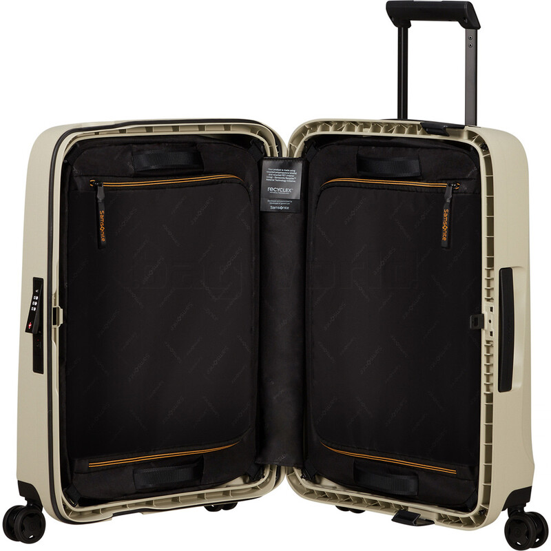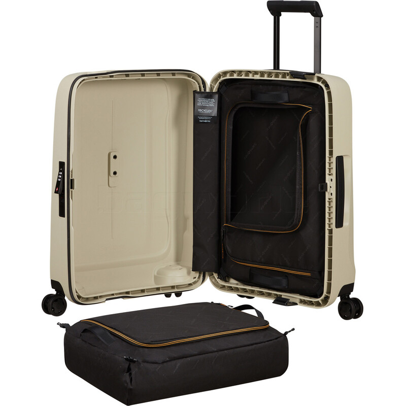 Meet Samsonite Essens, your new essential for every trip. Enjoy care-free travelling thanks to its lightness, the innovative 3 point locking system and its new and unique packing solution. Produced in the heart of Europe and made with recycled materials, Essens luggage equals durability without any compromise on quality.