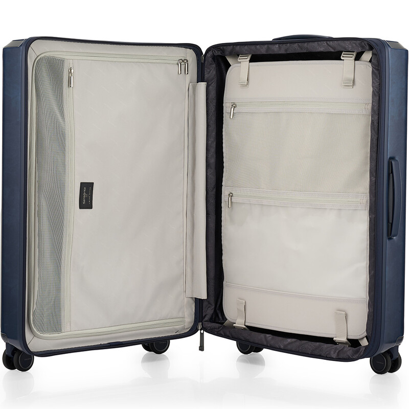 Samsonite Evoa Z, a quietly exquisite revolution, introducing the second generation of the iconic Samsonite EVOA series. Retaining the very essence of our DNA as minimalist, modern, and evolutionary. Under our design philosophy, we create a new finely brushed texture and the distinctive aluminum logo bar seamlessly integrated with the corner protector and exterior shell. It evokes exclusiveness and complexity of the manufacturing process, which make it unique in the marketplace. New AeroTrac™ Whirl suspension wheel system cleverly reduces noise and rolling vibrations. The design harmony, innovative features, and construction details prove that Evoa Z luggage cuts no corners.