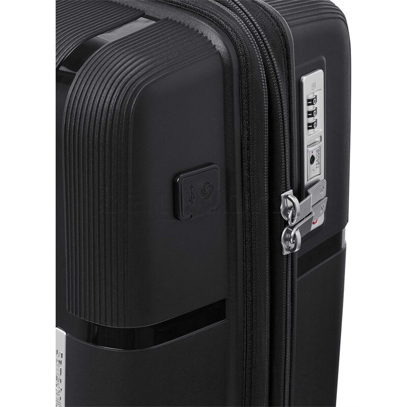 - USB charging port on side of suitcase with inbuilt power pack pocket inside (power pack not included). Compatible with USB-A and Micro-USB power packs.