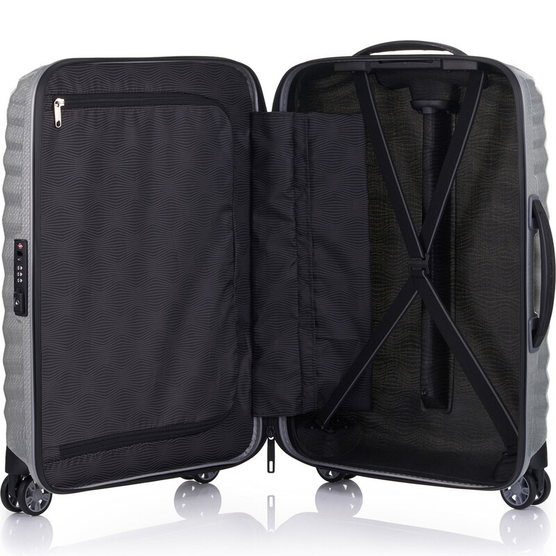 The inspiration for Samsonite Lite-Shock Sport luggage comes from nature. Its shock-absorbing shell design is based on the ripple-effect that appears when dropping a stone in water. This self-reinforced organic design gives extra strength to the case, especially in the corners, as the design wraps around the side of the case. Made with lightweight components, Lite-Shock Sport is the lightest of Samsonite’s Curv suitcases. Lite-Shock Sport now includes red highlight sports trims, along with water resistant PU coated zips.