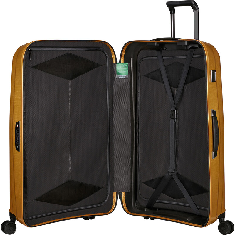 Samsonite Major-Lite luggage represents the start of a new era for Samsonite and Curv® Material Technology. A sophisticated new weaving technique provides incredible self-reinforcing properties as well as a distinctive pattern within. Impeccable attention to detail is shown through the bespoke texture featured on the carry handles, hinges and logo plates in combination with the shadow-chrome metallic trim. The interior is just as well appointed, constructed from Recyclex™ eco-material. Plus, you can make it yours with the included personalisation tag.
