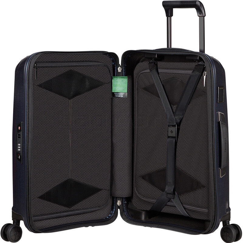Samsonite Major-Lite luggage represents the start of a new era for Samsonite and Curv® Material Technology. A sophisticated new weaving technique provides incredible self-reinforcing properties as well as a distinctive pattern within. Impeccable attention to detail is shown through the bespoke texture featured on the carry handles, hinges and logo plates in combination with the shadow-chrome metallic trim. The interior is just as well appointed, constructed from Recyclex™ eco-material. Plus, you can make it yours with the included personalisation tag.