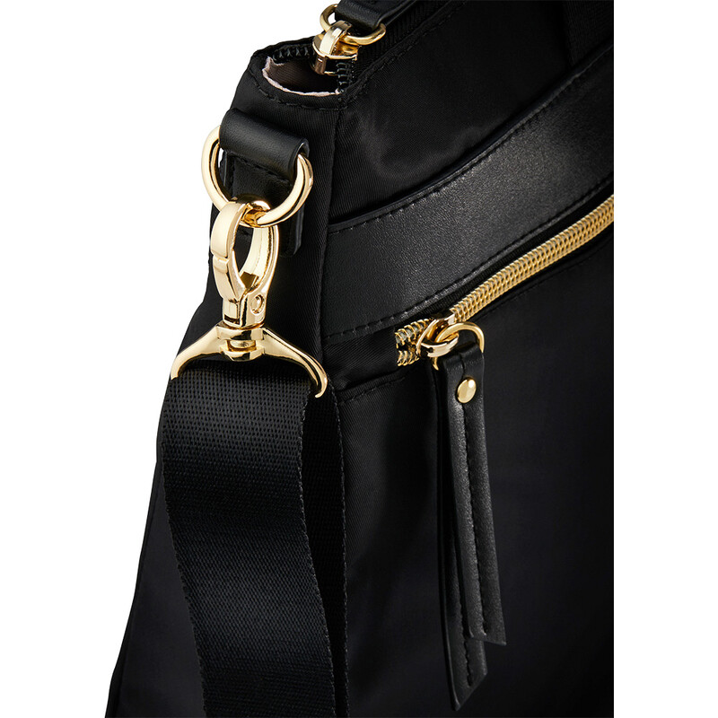 - 3-1 convertibility – cross body and shoulder mode using the adjustable, removable strap or handheld mode using the dual top carry handles