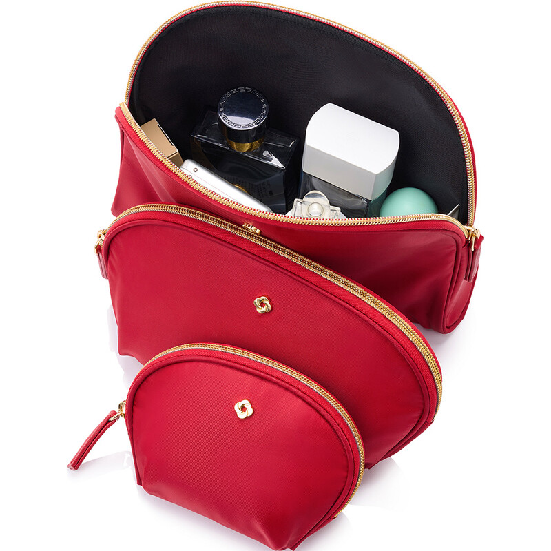 The Samsonite Mobile Solution range offers timeless style with a modern approach to function and organisation. Luxurious gold accent logos and zips elevate the collection. The set of three assorted-size pouches is the perfect solution to keep all your small items organised and easily accessible in your bag.