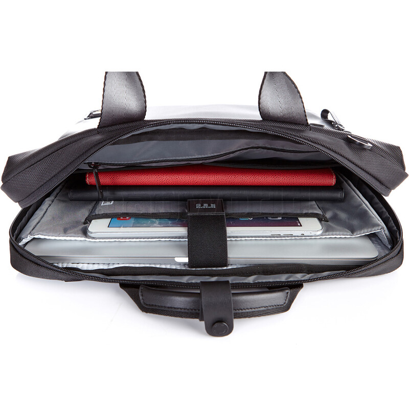 - Spacious main compartment with zippered opening features laptop sleeve, tablet sleeve, two mesh pockets and small zippered internal pocket.