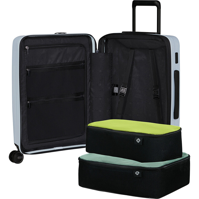 Samsonite Restackd 55cm Easy Access is the ultimate Carry-On companion. The integrated soft-front zippered pocket, which can be locked independently of the main suitcase includes; separate compartments for both laptop and tablet, pockets for other essentials and tech accessories, and can be easily accessed during transit or onboard your flight. Also included are two complimentary removable packing cubes for organised travel. A modern suitcase collection encompassing an urban spirit and minimalist design. Samsonite Restackd, an evolution of the beloved Stackd collection is now even lighter, made utilising strong and versatile polypropylene which is highly scratch resistant and features a durable sophisticated texture, ready to roll as your sidekick around the world.