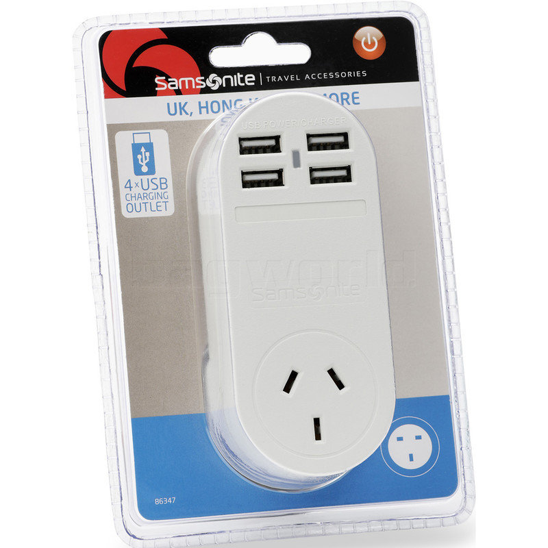 Samsonite Travel Accessories Adaptor Plug USB x 4 Australia to UK & HK White 86347