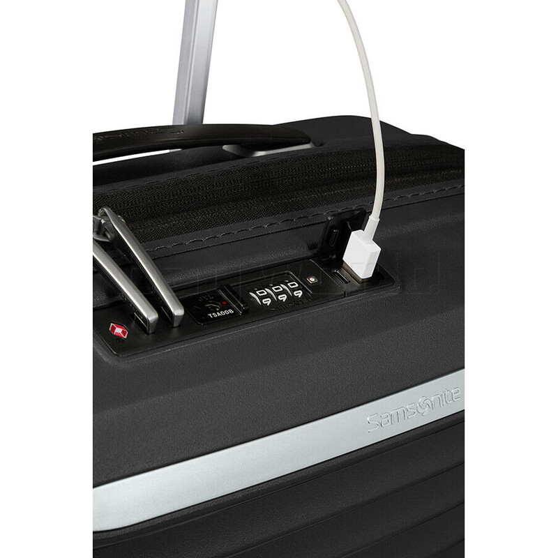 - USB charging port on top of suitcase with inbuilt power pack pocket inside (power pack not included)