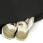 - Base zippered compartment features excess lining that enables separated laundry or shoe storage and if needed can fill out to approximately half the capacity of the main compartment
