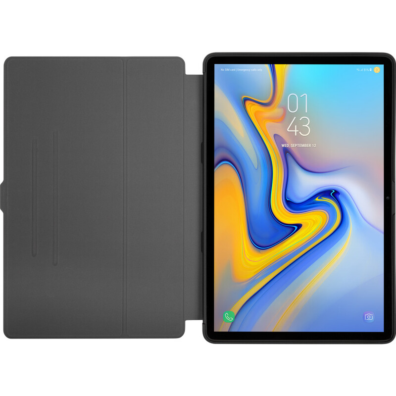 A simple flip transforms your case into a sturdy stand for comfortable typing. Flip again for easy viewing with virtually infinite viewing angles. Enjoy added ease and convenience with the elastic stylus holder and S Pen® charging port, keeping your S Pen ready to go or your stylus close at hand. Precision cut-outs offer easy access to your controls, ports, and camera lenses. Even your audio gets a boost with dedicated speaker ports.