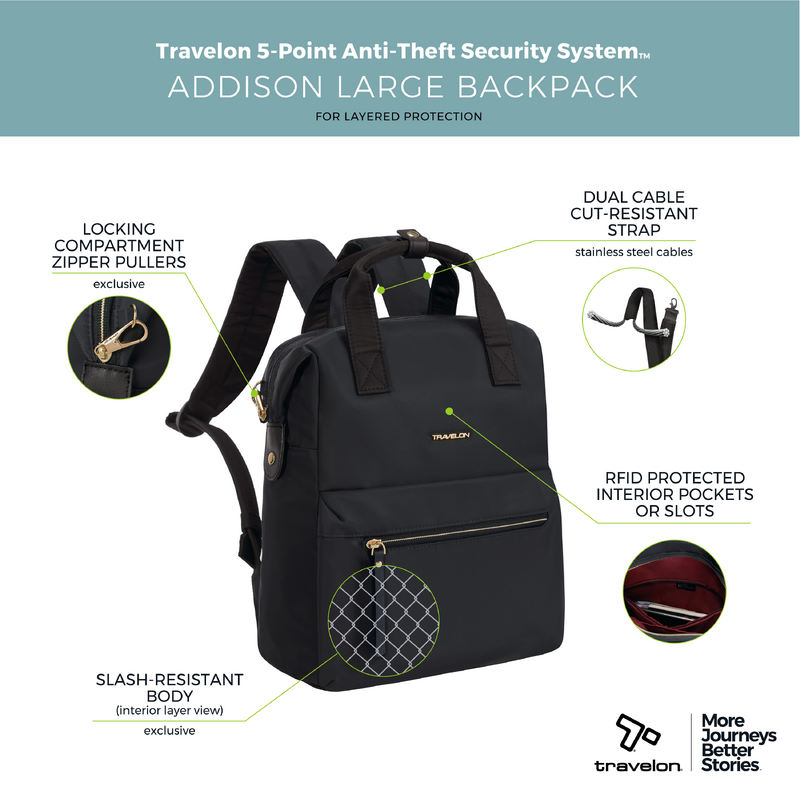 Travelon Addison Anti-Theft 13" Laptop Large Backpack Black 43635 - ORDER NOW FOR DELIVERY IN LATE FEBRUARY 2026