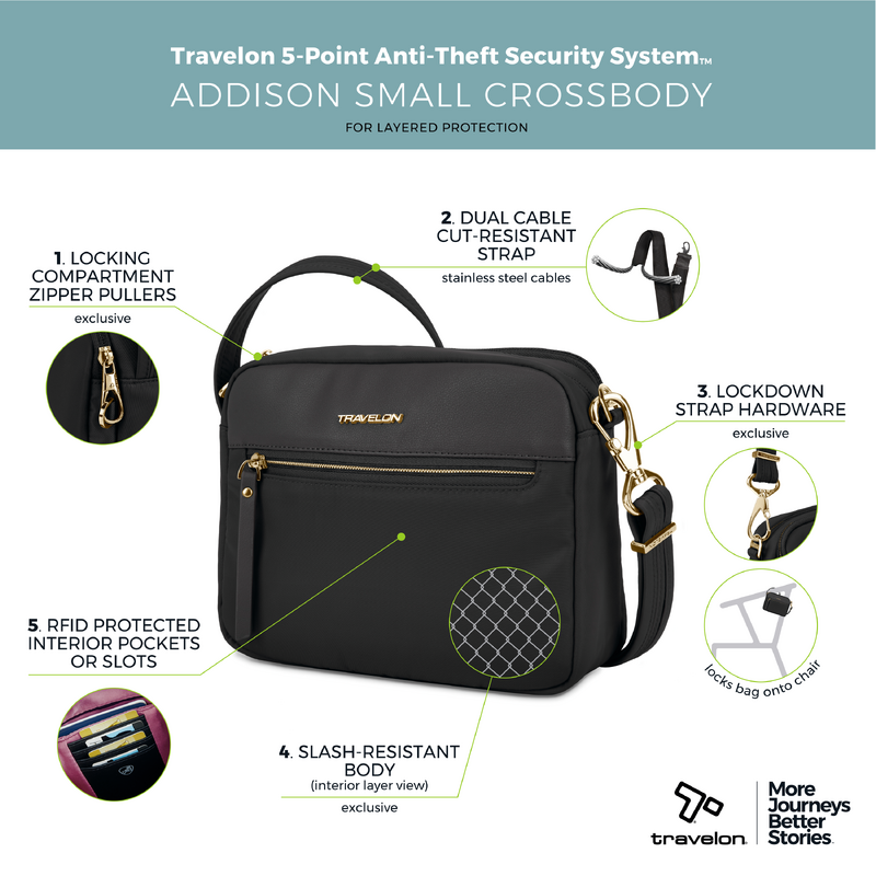 Main features of the Travelon Addison Anti-Theft Small Crossbody Bag include: