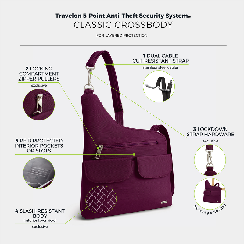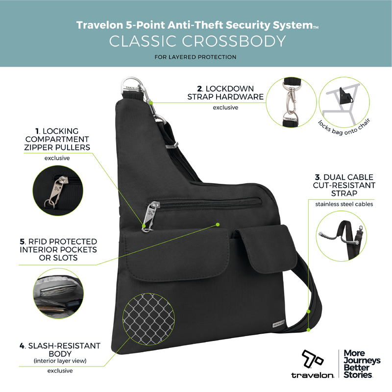 Main features of the Travelon Classic Anti-Theft Crossbody Bag include: