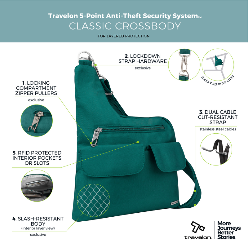 Main features of the Travelon Classic Anti-Theft Crossbody Bag include: