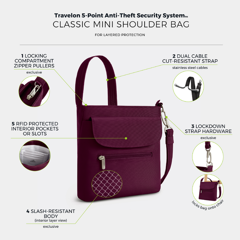 Travelon Classic Anti-Theft Mini Shoulder Bag Burgundy 42459