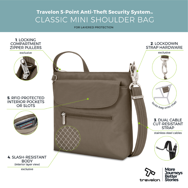 Main features of the Travelon Classic Anti-Theft Mini Shoulder Bag include: