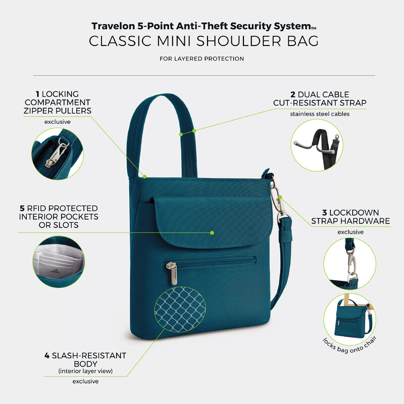 Main features of the Travelon Classic Anti-Theft Mini Shoulder Bag include: