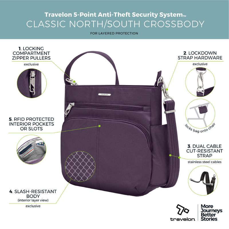 Travelon Classic Anti-Theft North/South Crossbody Bag Purple 43310